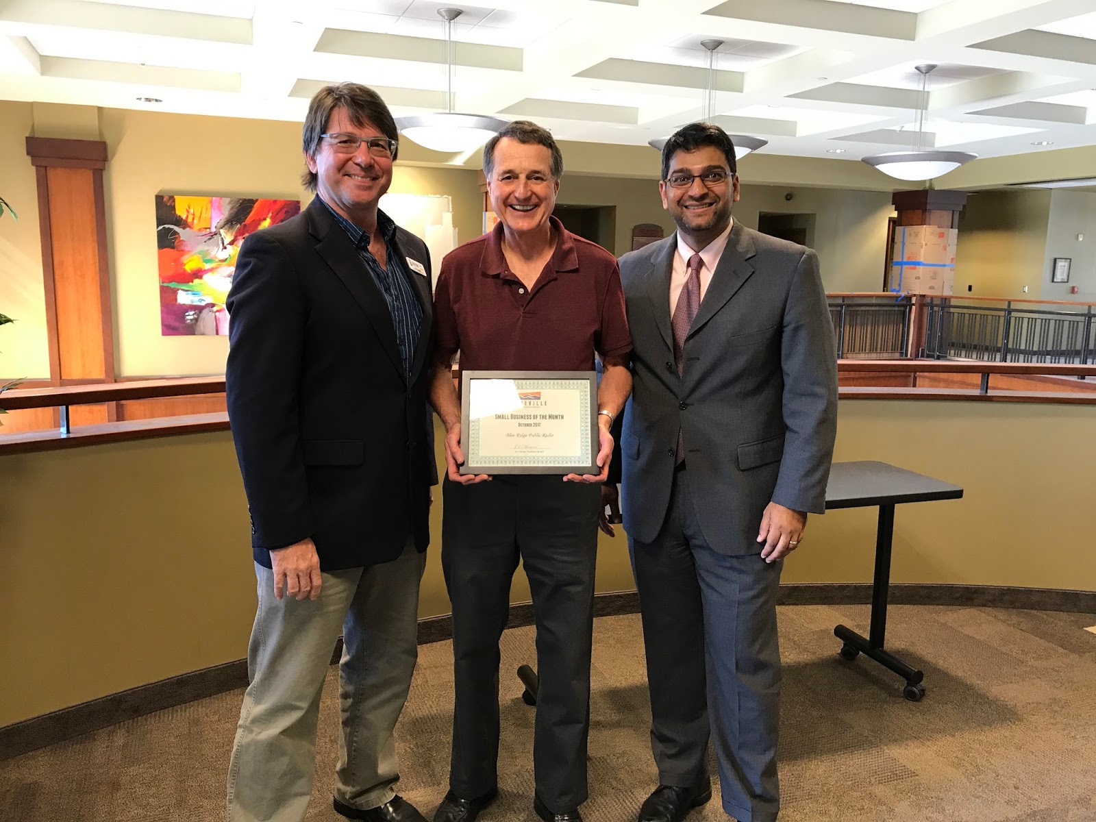 | BPR Dir. of Underwriting Steve Busey and BPR Board Chair Ken Brame with Chamber Board Chair Himanshu Karvir |