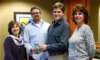 Chamber board member Carol Rovello and board chair Linda Brandt with Dynamite Roasting Company founders Andy Gibbon & Josh Gibbs |