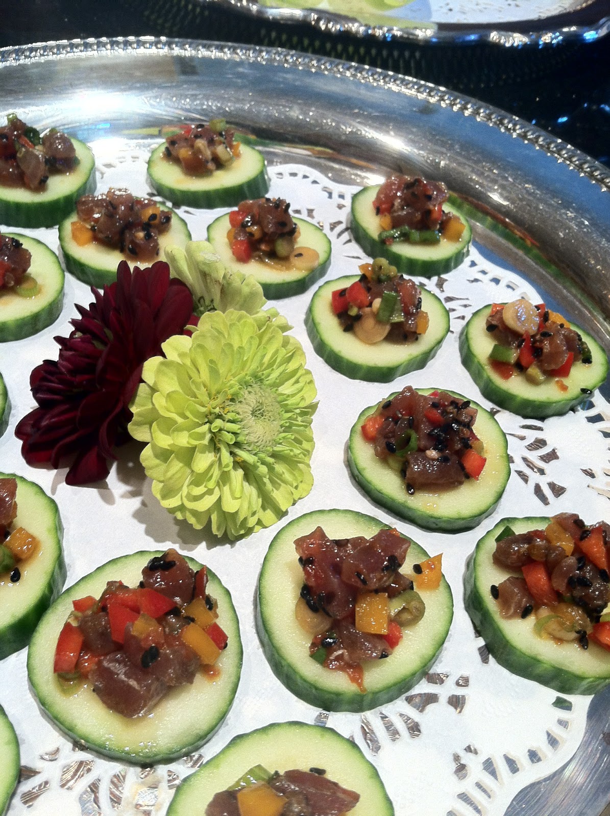 There have been some fun thematic challenges including a period Victorian lunch for students studying Charles Dickens. We also had a reception for the local jeweler, Blue, in which cubed blue food was created with Peruvian blue potato prosciutto skewers, cubed macaroons with blue sanding sugar, blueberry lavender shortbread, and house made honey thyme bleu cheese crackers. Building relationships through this personal touch has been a gratifying way to watch my business grow. I am so very proud to see my client list expand as shown by a full calendar and an A list of repeat customers. The Everyday Gourmet tagline is to CREATE, NOURISH, DELIGHT; when folks are falling in love and coming back for more that means the delight is mutual!