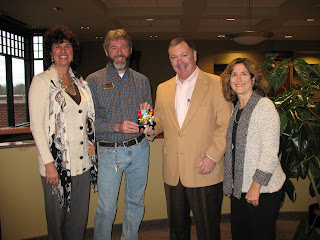 Chamber Chair Linda Brandt and Vice Chair for Small Business Carol Rovello present the Small Business of the Month Award to Scott Stetson and a Board Member of Habitat ReStore |