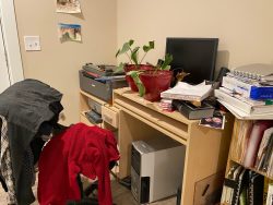 There’s nothing glamorous about my home office, which is basically a cubby in the wall, but I do get to snuggle with our cat Bug while I work.”