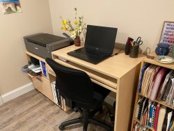 “I’ve found that I feel best and am most productive when I work at my kitchen table, desk, or basically anywhere that isn’t my bedroom. It helps me get into the “zone” that I normally get into at work. I do take full advantage of WFH perks like walking my dog over lunch or doing a face mask, which I could never do in the office because it would scare everyone.”